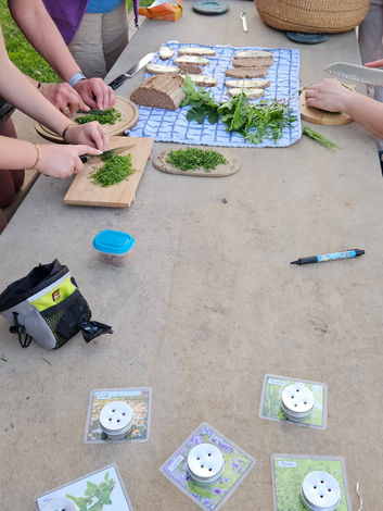 Bei strahlendem Sonnenschein fand unser erstes Event statt: ein Kräuterspaziergang mit Kräuterpädagogin Lydia Fuchs. Gemächlich ging es an der Alten Schäferei los bis zu einer Wiese, auf der wir mit Lydias Hilfe Kräuter bestimmten und ernteten. Mit vollem Kräuterkorb machten wir uns auf zum Picknick-Platz. Dort wurde die Ernte fleißig geschnippelt und auf Butterbrote verteilt. Lecker!!!! Wer noch Zeit hatte, ließ den Abend im Biergarten ausklingen.